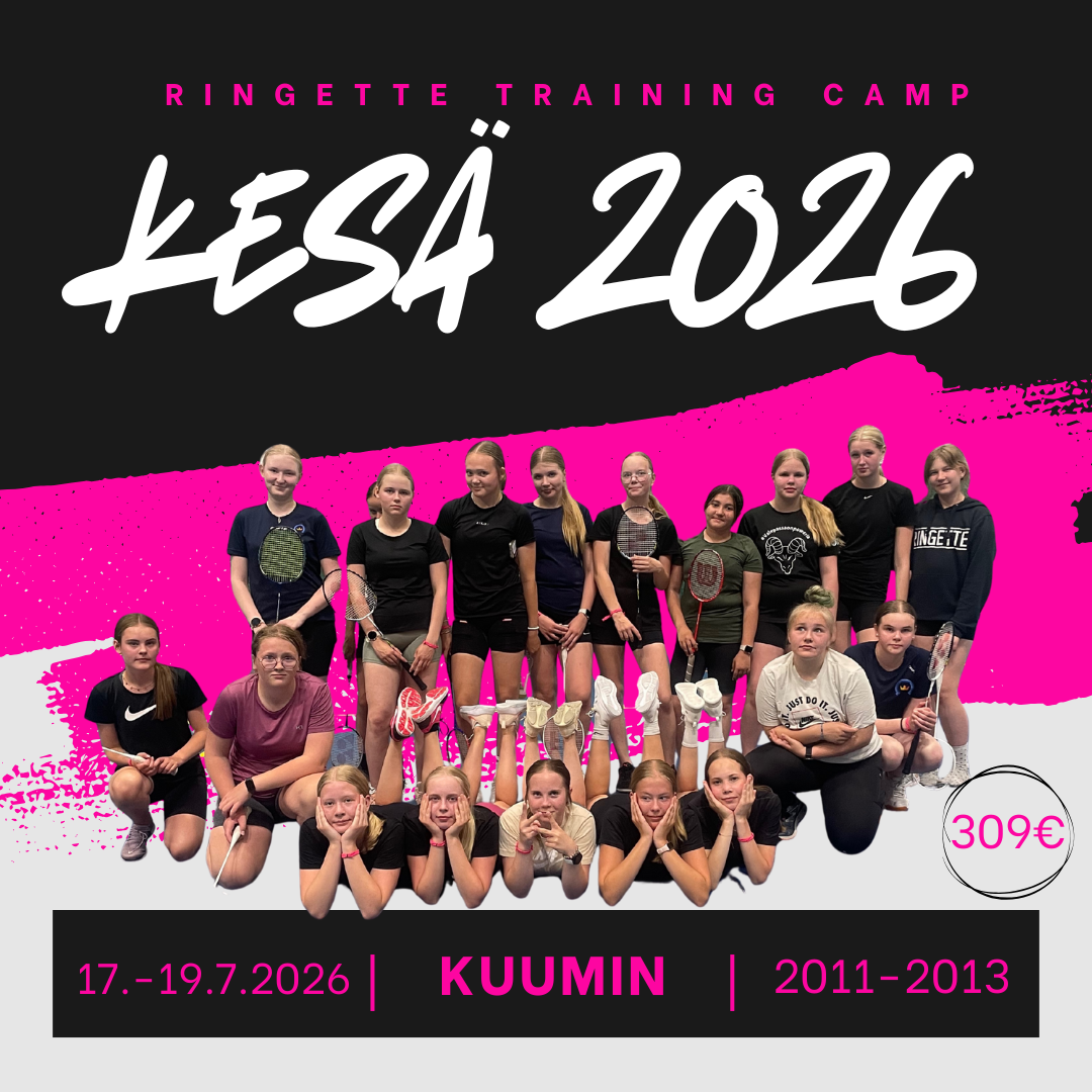 Ringette Training Camp järjestetään kesällä 2026 Vierumäen urheiluopistolla. Kesän KOVIN leiri on tarkoitettu 2009 & 2010 & 2011 syntyneille pelaajille! Myös 2008 syntyneet pelaajat ovat edelleen tervetulleita leirille.